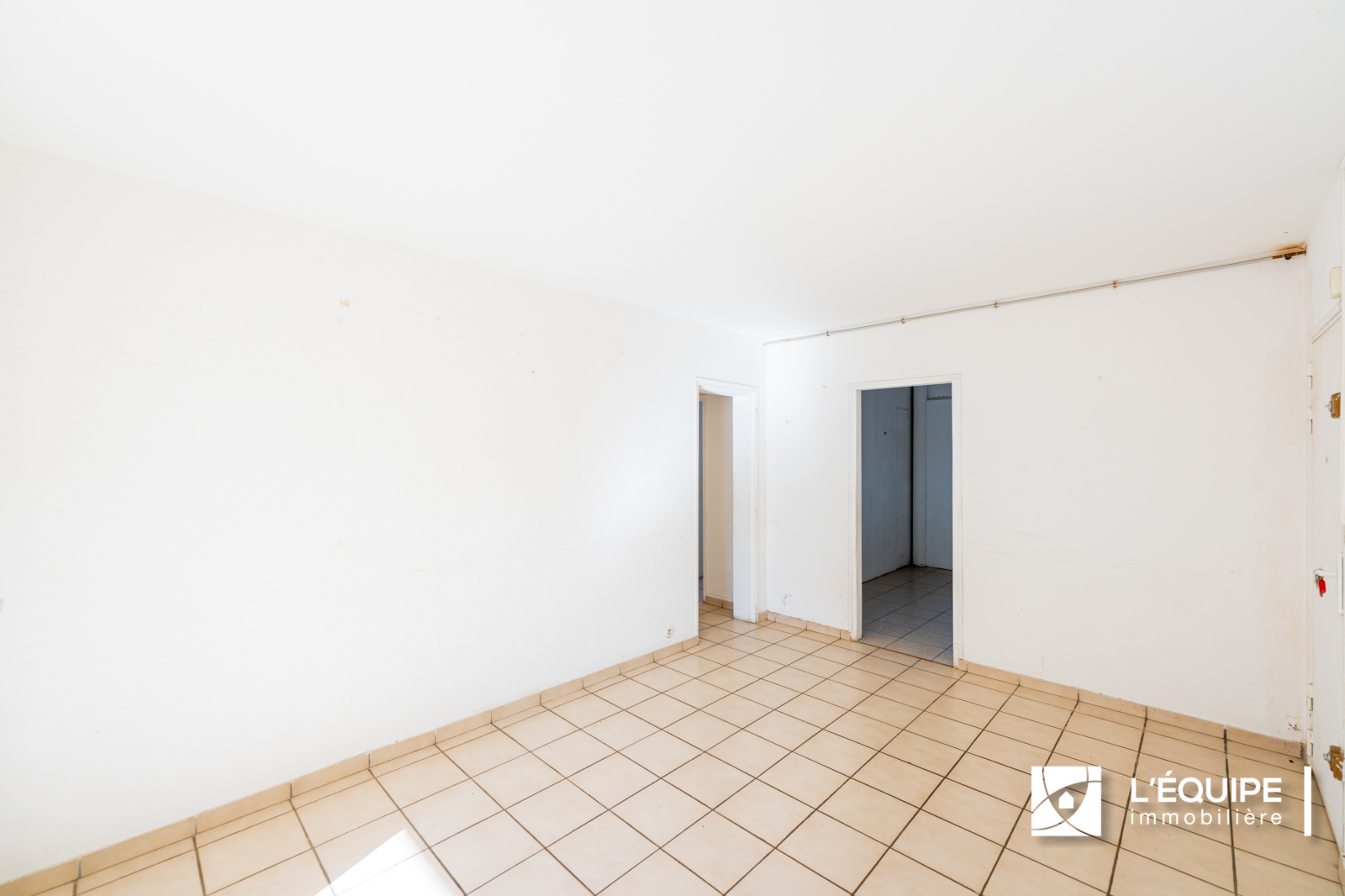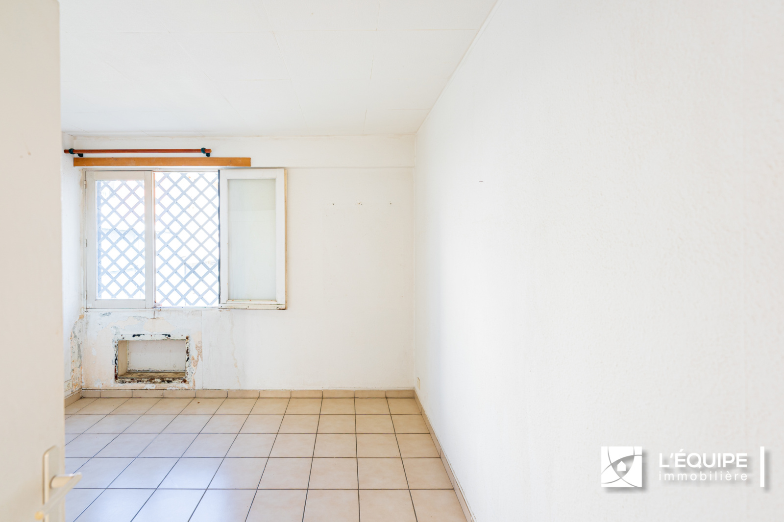 appartement T3 au 1e et dernier niveau, 62m², constitué d'une salle d'eau, un espace cuisine, un coin salon de 14m², 2 chambres, un balcon, une cave et une place de parking privative. Prix de vente : 125 000 €. Impôt foncier : 1 200 € à l'année.