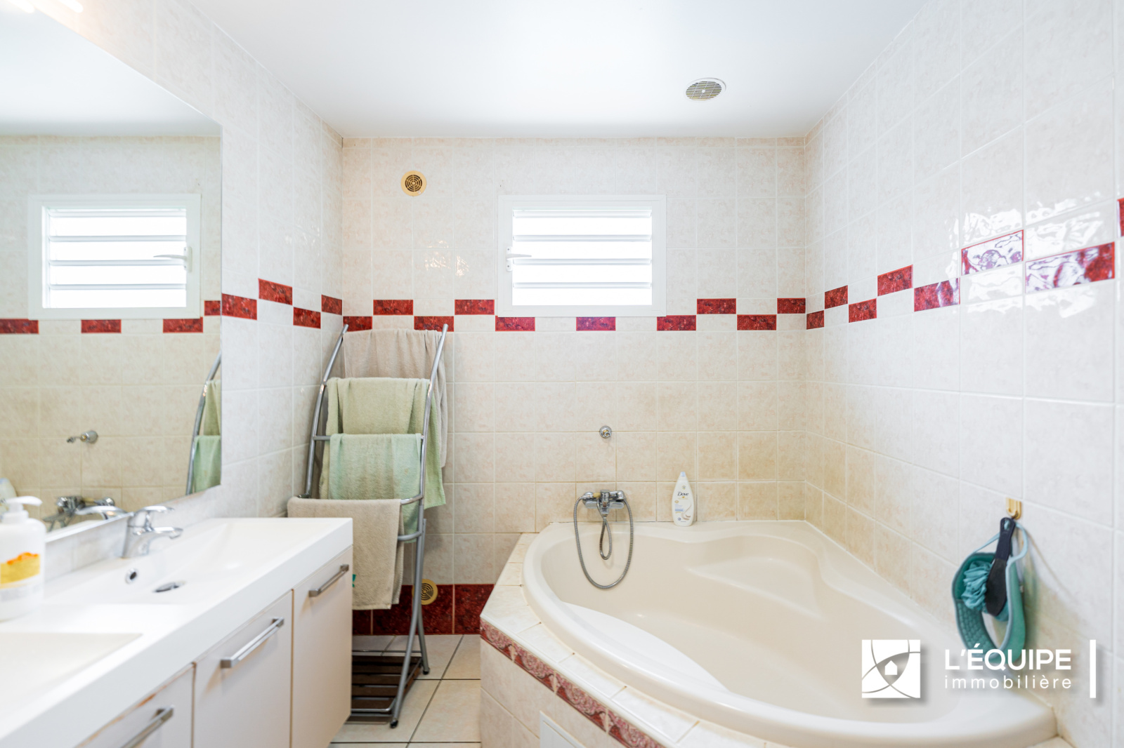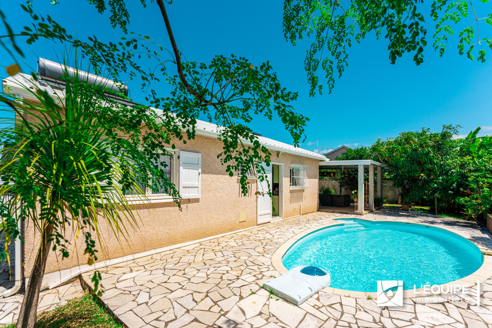 A Sainte Marie, agréable Villa de plain pied de 159 m2 utile sur un terrain plat de 535 m2, très bien arboré de nombreux arbres fruitiers, une piscine saura agrémenter ce jardin. Deux varangues agrémentent cette villa.