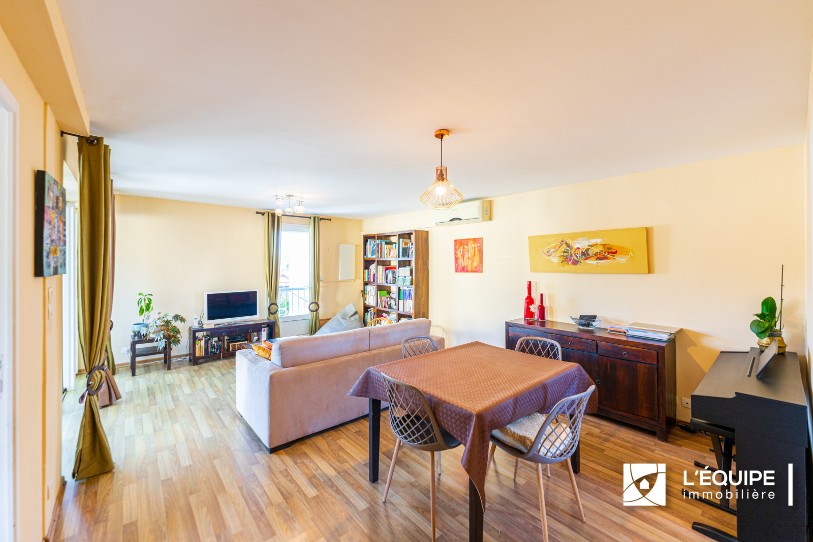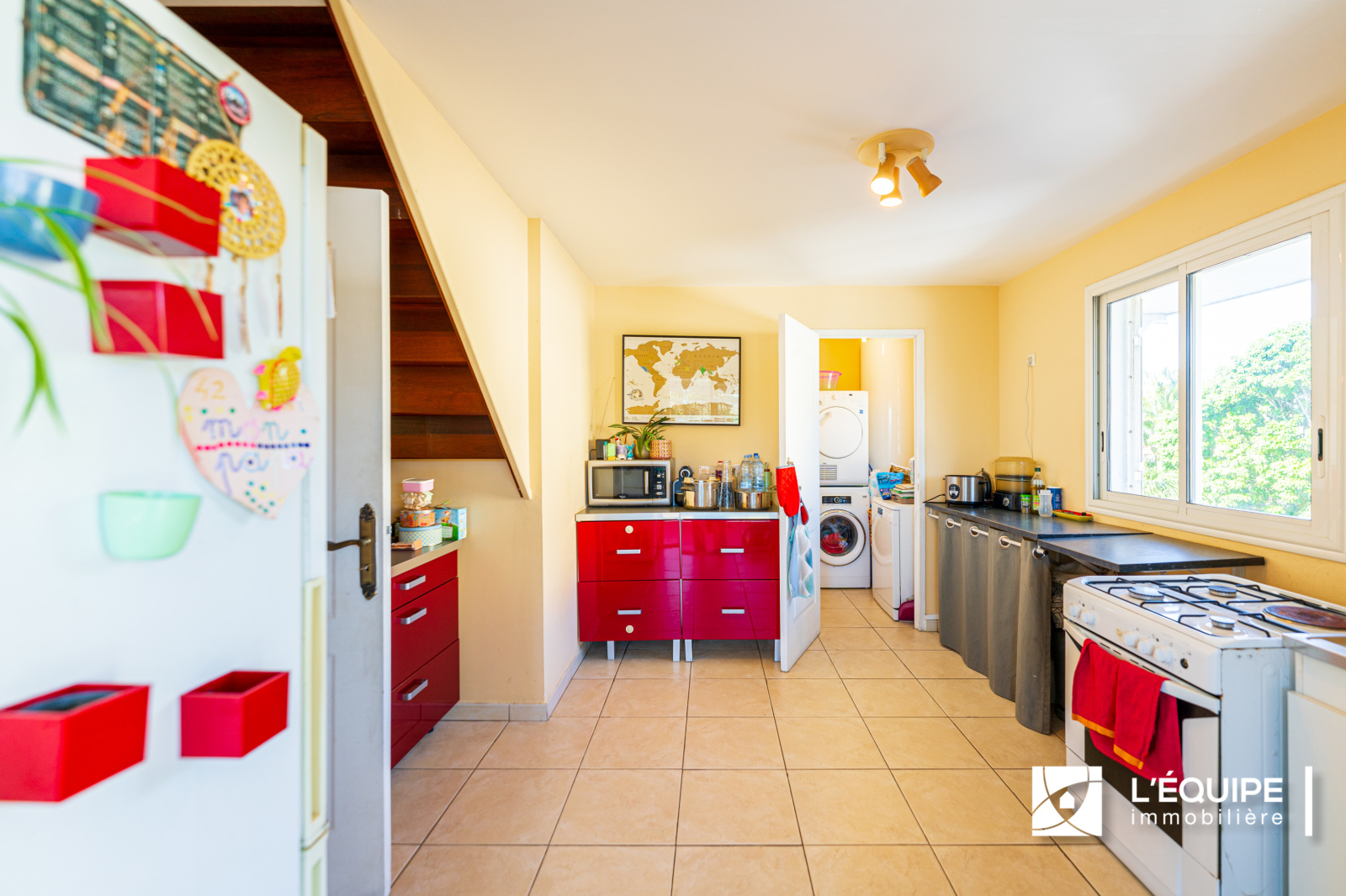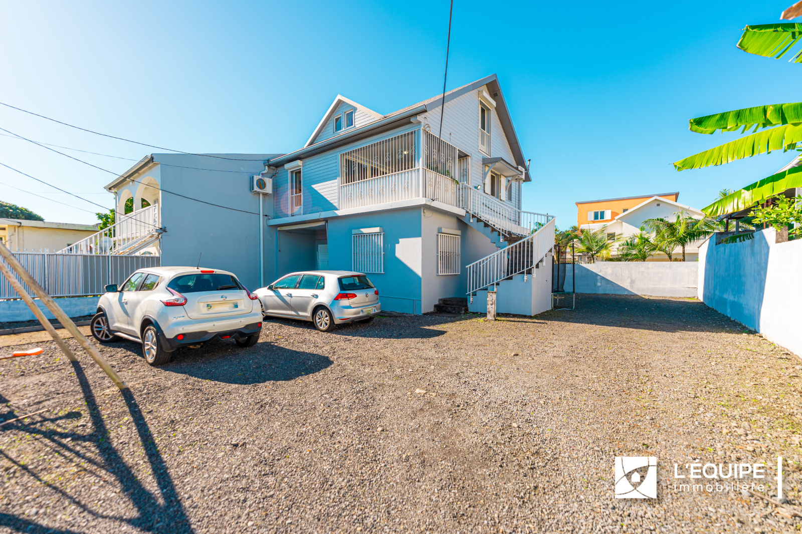 A l'étage indépendant, vous trouverez un magnifique F4 sur 2 niveaux composé d'une cuisine et un salon ouvert sur varangue, buanderie, une chambre, salle de bains et wc.