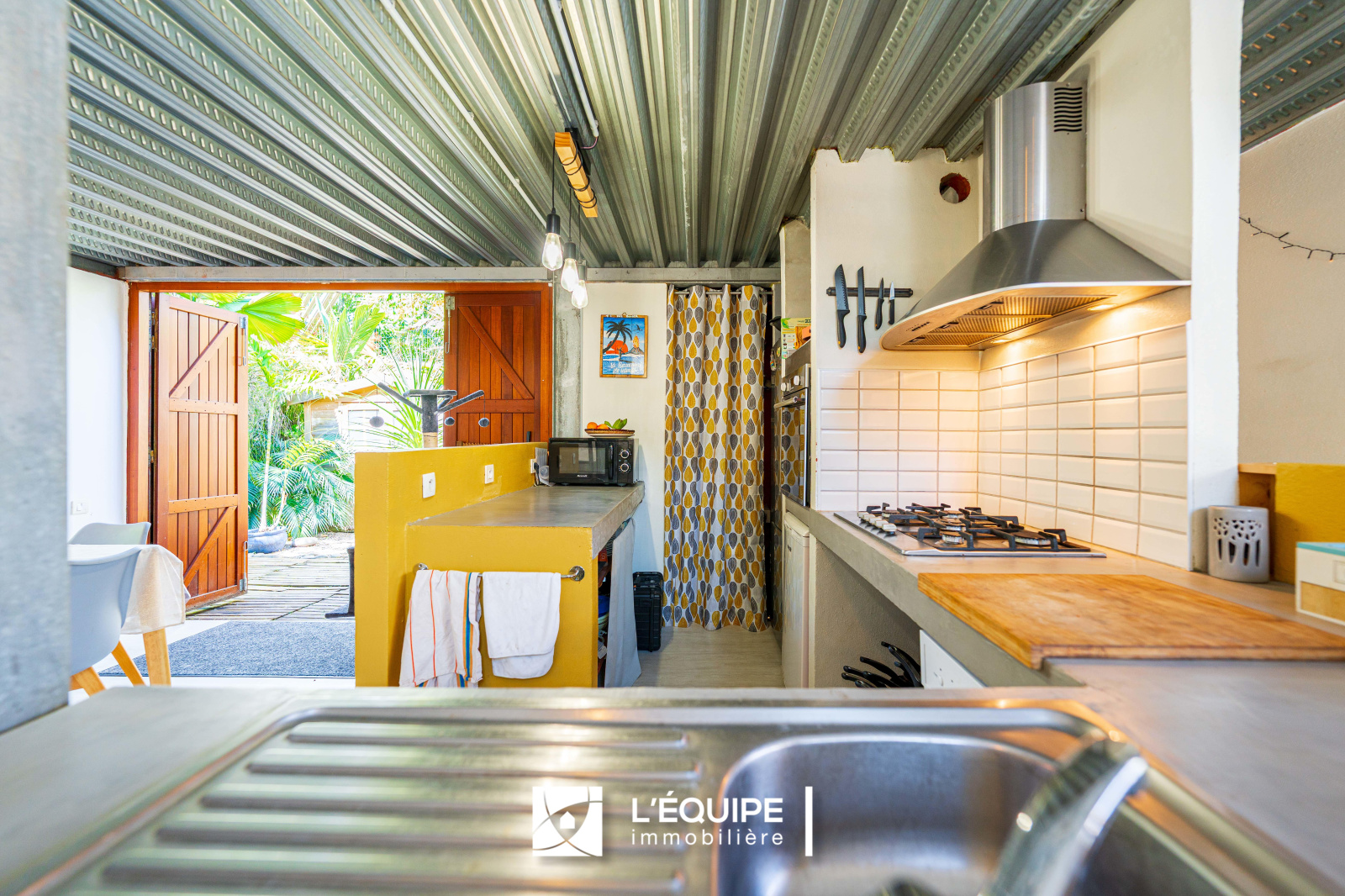A L’intérieur, d’une surface habitable de 127 m², s’articule autour d’un séjour-salon, une grande varangue, une cuisine équipée, une buanderie.
