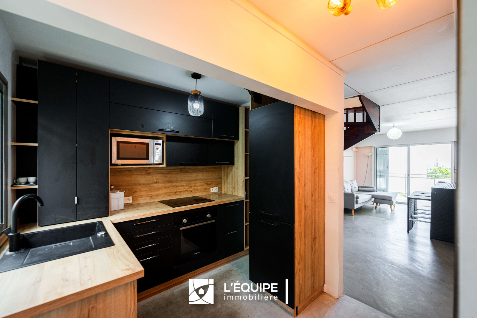 Sylvie COTTU de L'ÉQUIPE IMMOBILIÈRE RÉUNION a le plaisir de vous présenter à la vente ce bel et atypique appartement T4 en duplex de 108 m2 de surface utile et une cave d'environ 3 m² en rez-de-chaussée et un stationnement aérien.