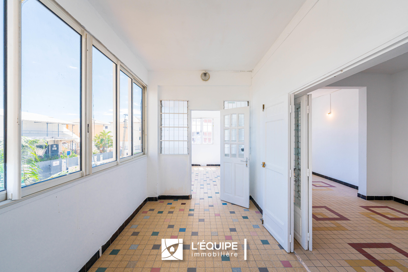 L'EQUIPE IMMOBILIERE vous propose à la vente un appartement T4 d'environ 76 m² habitable au R+1 d'une maison, idéalement située au centre de Ste Clotilde dans une copropriété de deux lots. Il comprend un porche (entrée individuelle) d'environ 20 m², un hall d'entrée d'environ 13 m² donnant sur une terrasse fermée par des baies vitrées (très bel espace de vie ensolleillé et aéré !), un salon d'environ 23 m2, 3 chambres d'environ 10 m² chacune (, une cuisine séparée, une salle de bain. Vous bénéficierez égalment d'une coursive d'environ 18 m². A noter que l'ensemble du logement dispose d'une belle hauteur sous plafond.