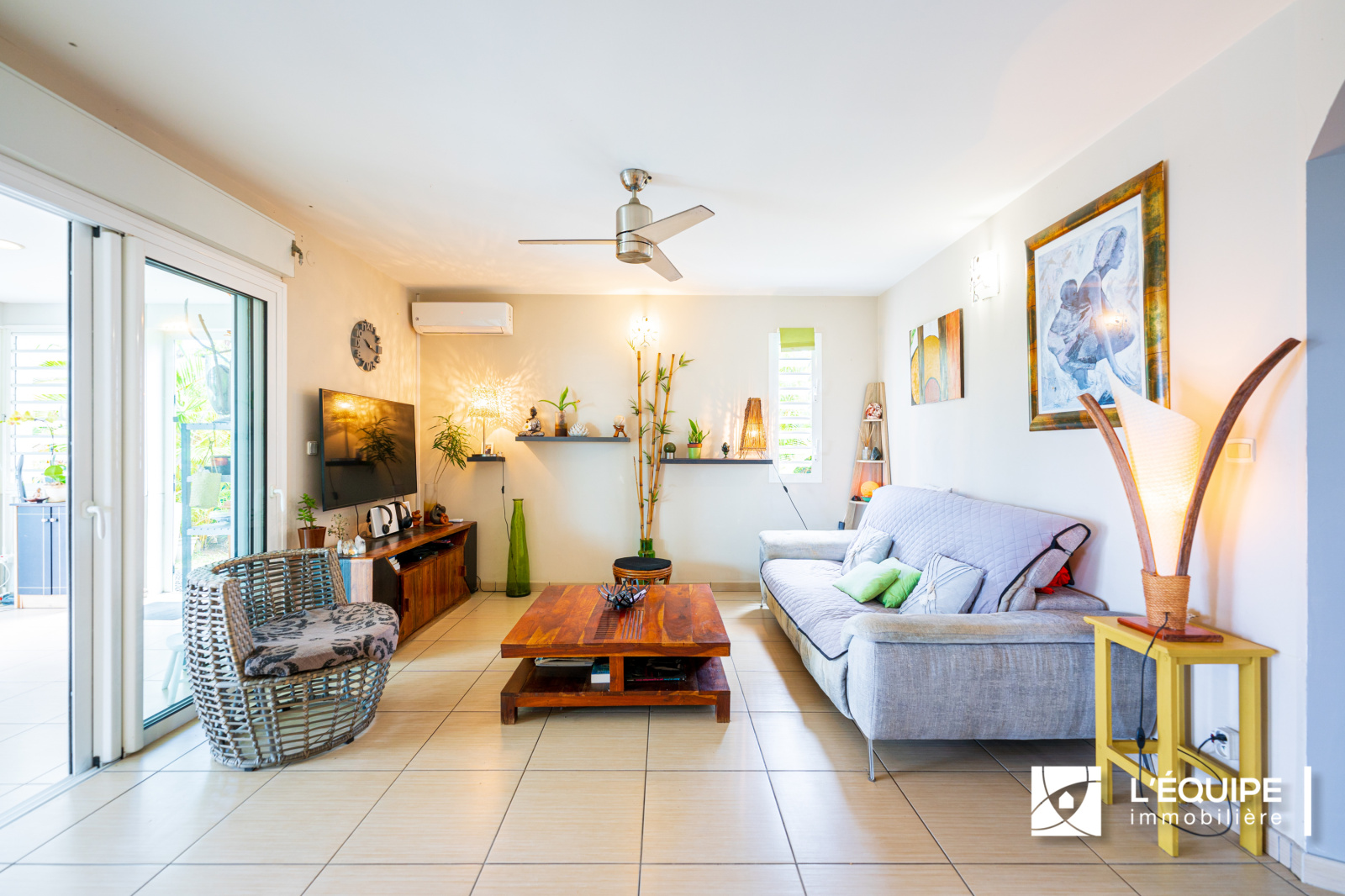 Cette villa de. 100 m2 habitables édifiée sur un magnifique terrain arboré de 500 m2 est composée d'une cuisine ouverte sur un séjour de 32 m2, de 3 belles chambres, une varangue fermée type véranda, une salle de bains avec baignoire et douche.