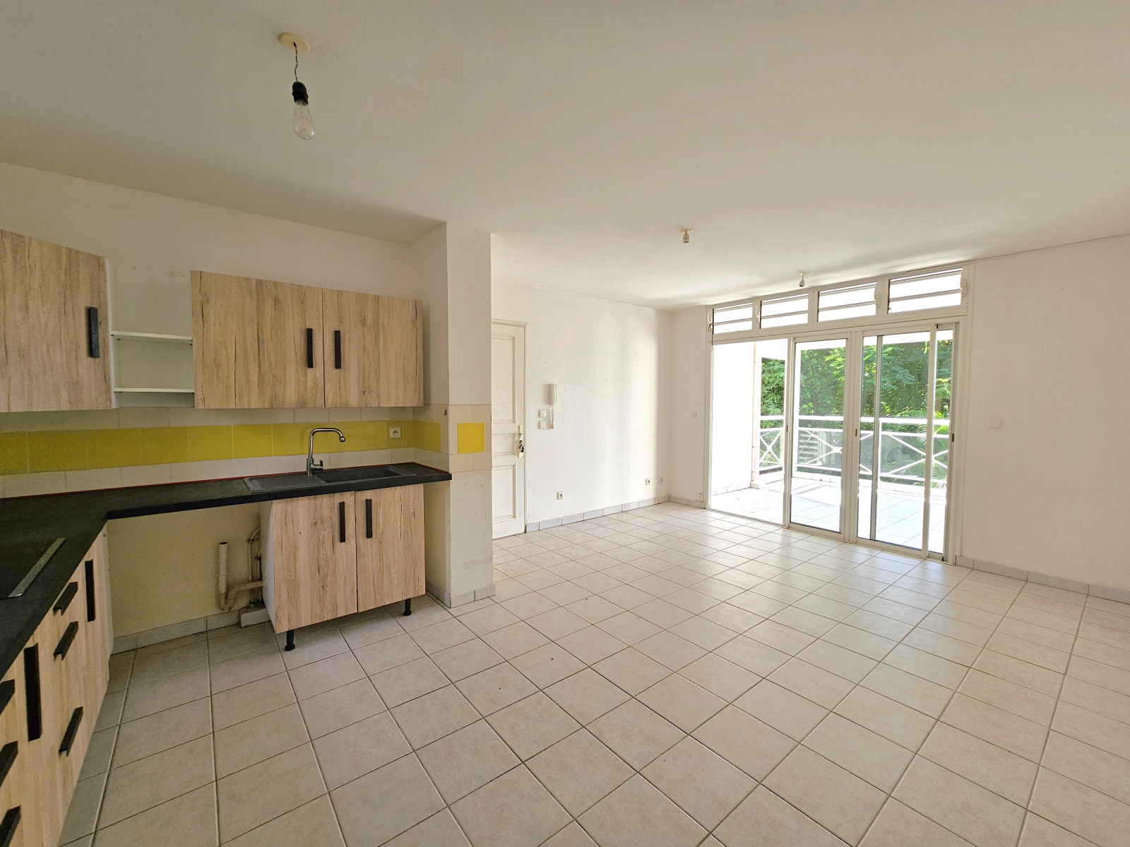 Il est composé d'une cuisine ouverte sur un séjour avec accès à la terrasse qui offre une vue mer et baie de Fort-de-France, d'une chambre climatisée avec placards, et d'une salle d'eau avec WC.